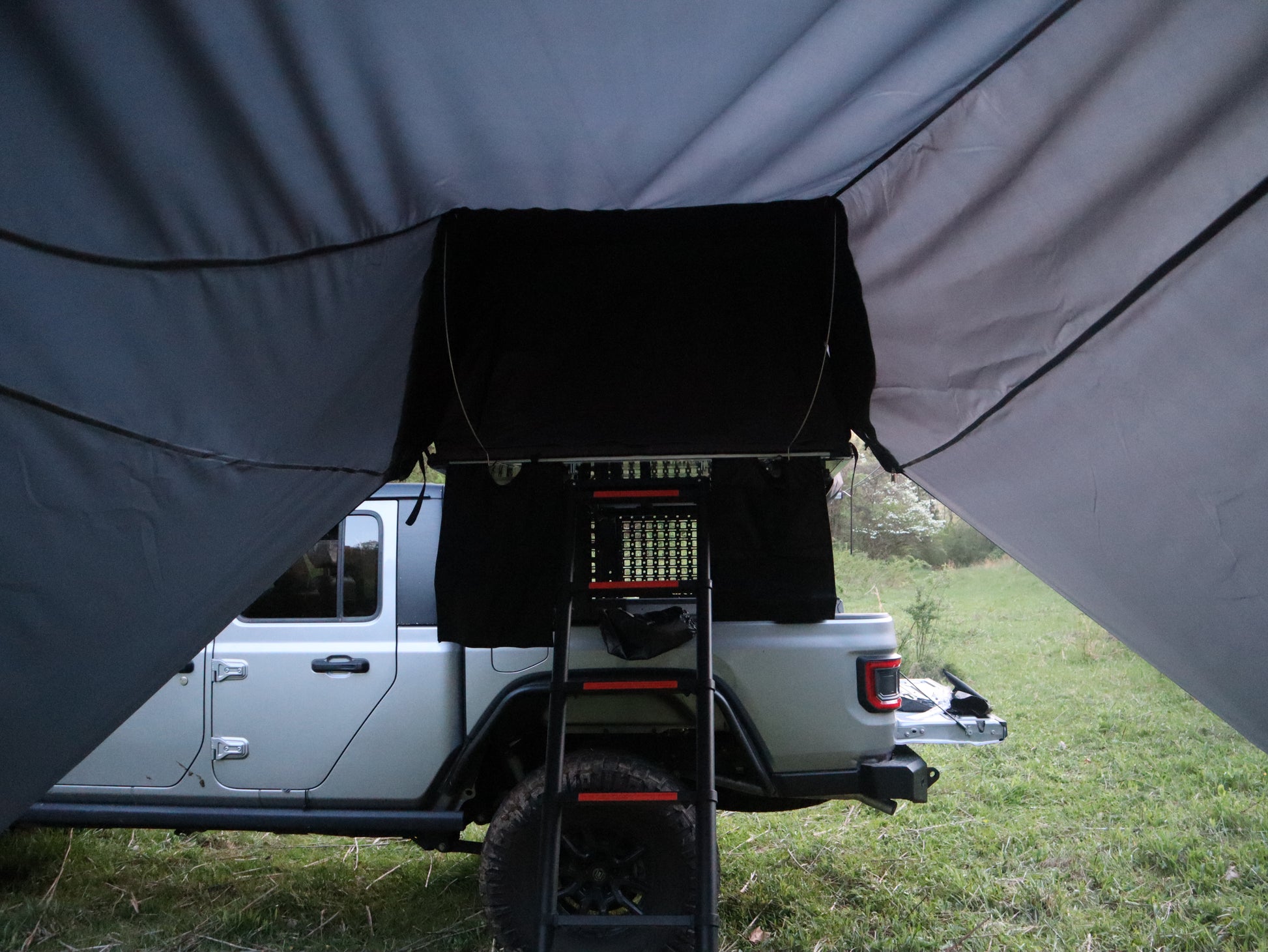 The Bonny Big'Un Door Awning will attaches to the door overhang. Easy one person set up gives you some added comfort on your adventures.