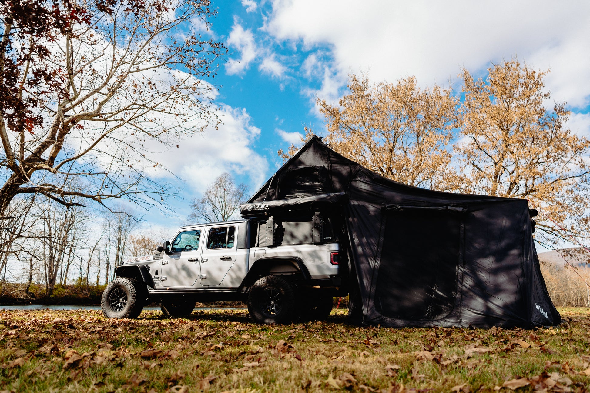 The CattyWampas Annex will attaches to the door overhang. Easy one person set up gives you some added comfort on your adventures.