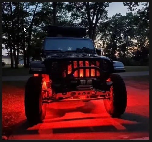 SET INCLUDES 11 LIGHTS THAT MOUNT IN EXISTING LOCATIONS, YIELDING COMPLETE COVERAGE BOTH UNDER AND AROUND THE JEEP.