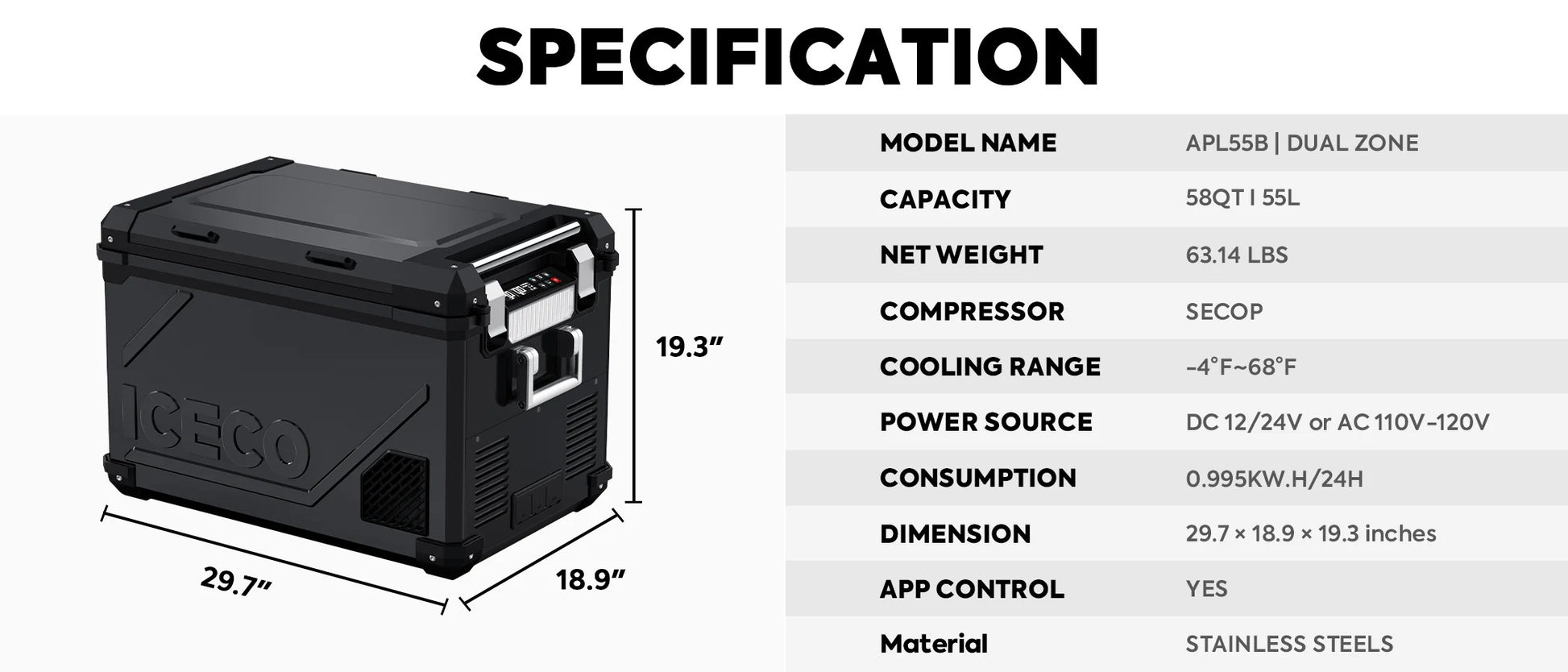 58QT APL55 Dual Zone 12 Volt Fridge Freezer